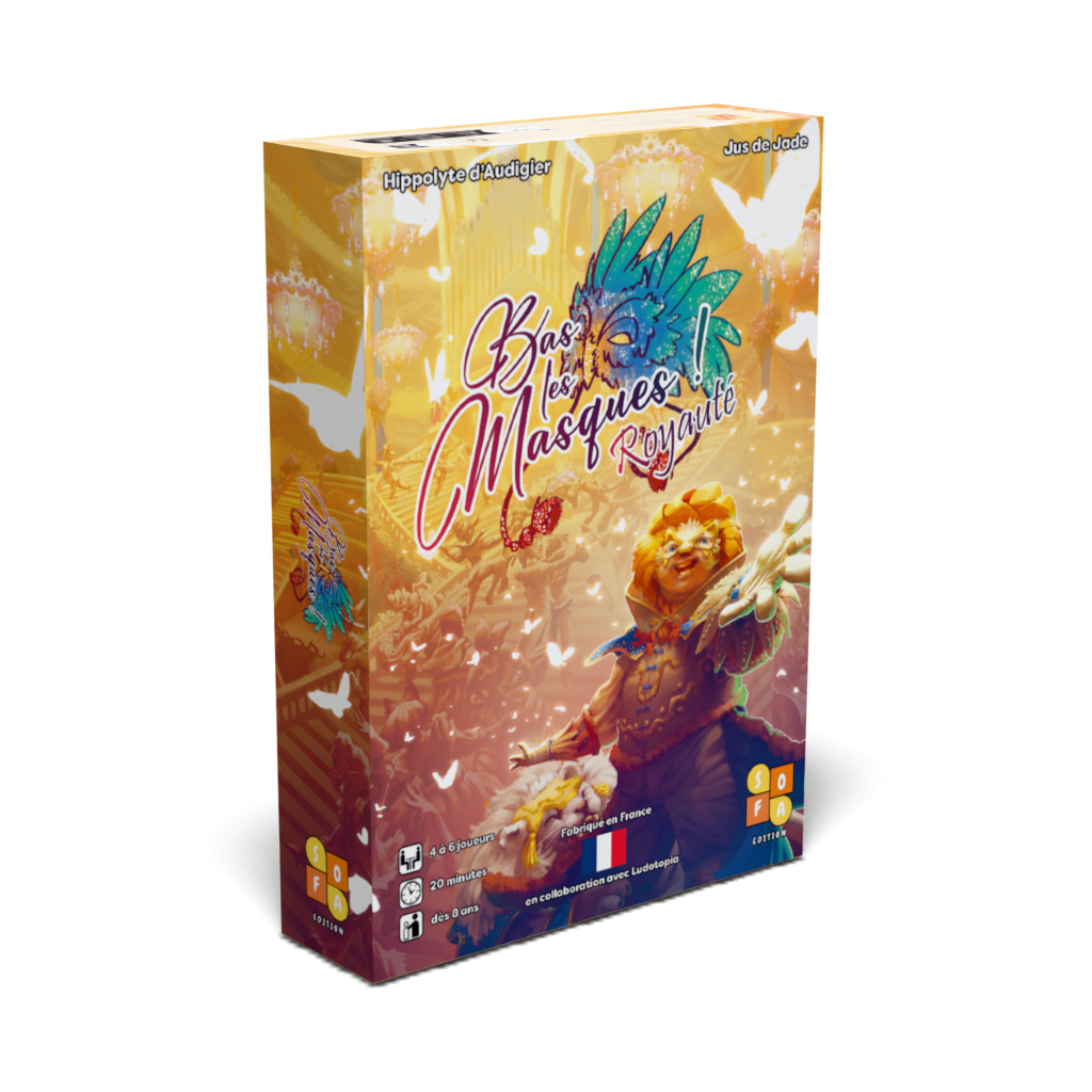 Bas les masques ! est également un jeu modulable, Royauté est la première boîte de jeu qui vous permettra de jouer de 4 à 6 joueurs mais deux autres boîtes sortiront durant l’année 2025 qui vous permettront de jouer jusqu’à 18 joueurs en cumulant les boîtes !