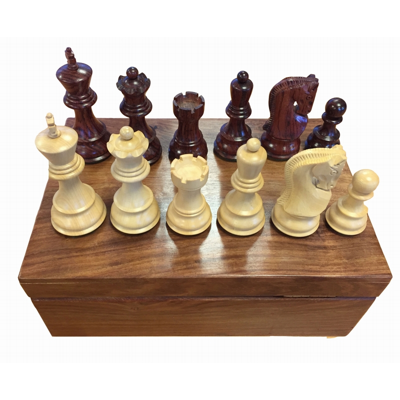 Très beau jeu de pièces d'échecs luxe fabriquées dans un bois noble, le Palissandre et en Buis. Les pièces sont plombées pour rajouter au confort de jeu.