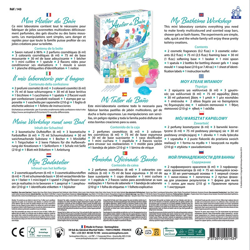 Le coffret Atelier du Bain est idéal pour vous apprendre à créer des produits d’hygiène comme des savons, des bains moussants ou des gels douches. Vous pourrez en choisir la couleur et l’odeur tout en découvrant les petits secrets de fabrication qui permettent de changer la texture des bains moussants.