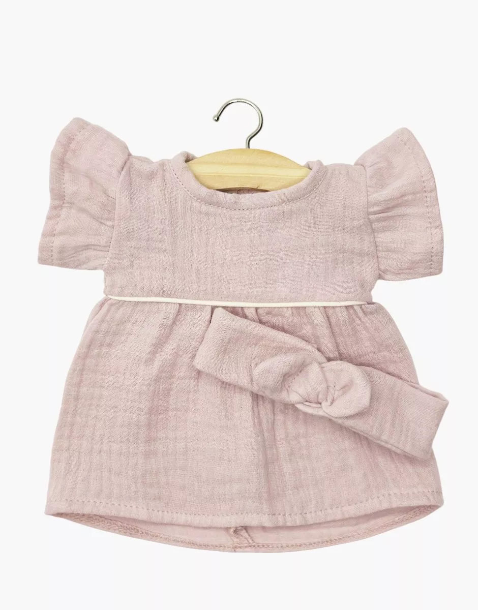 Robe Daisy et son headband à noeud rond en gaze de coton pour poupées Minikane Gordis 34 & 37cm.
